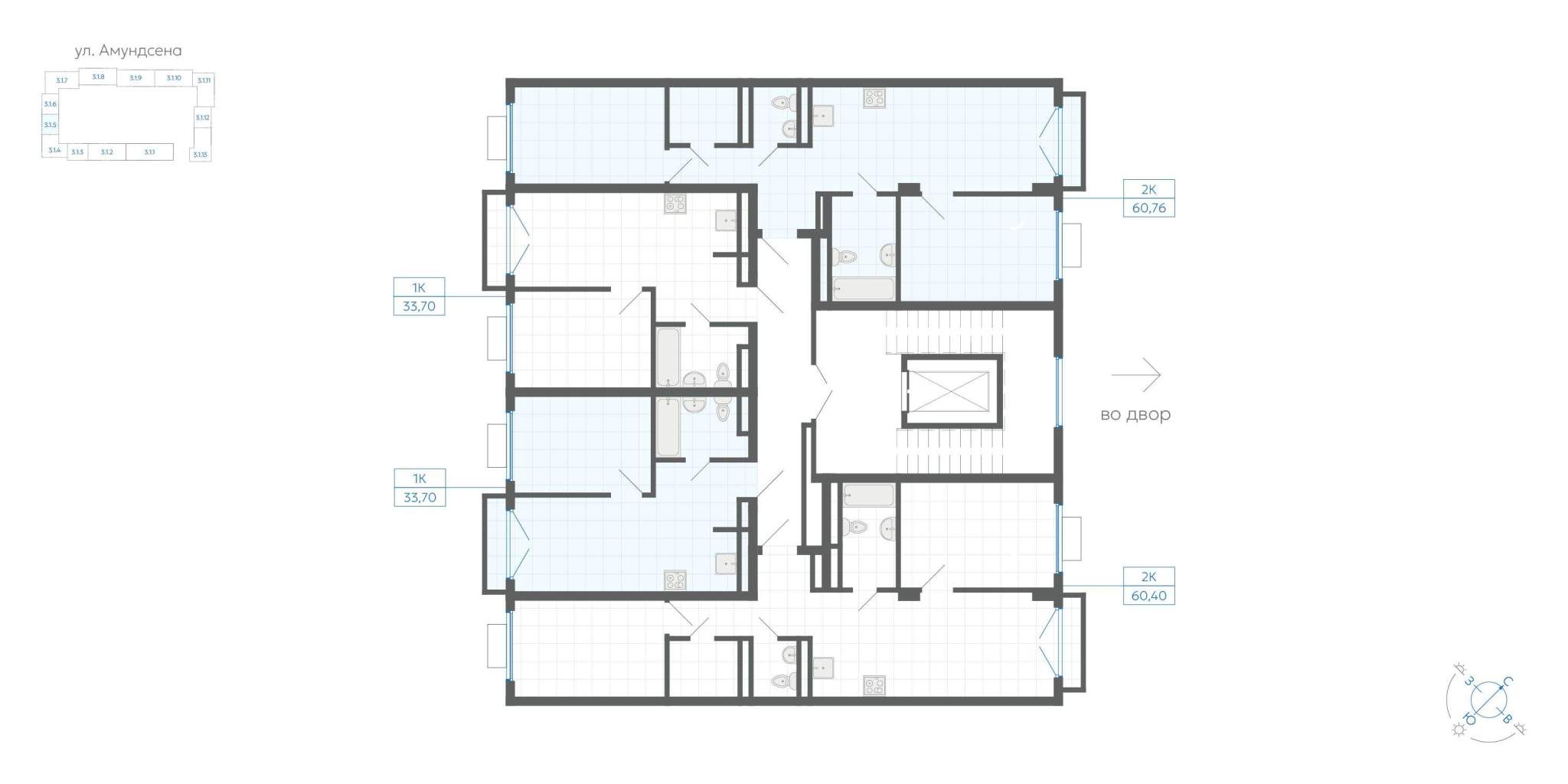 Квартира располагается на 2 этаже 4-этажного дома в ЖК Центральный парк.