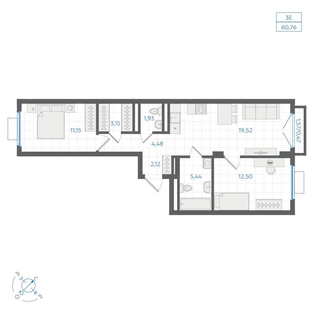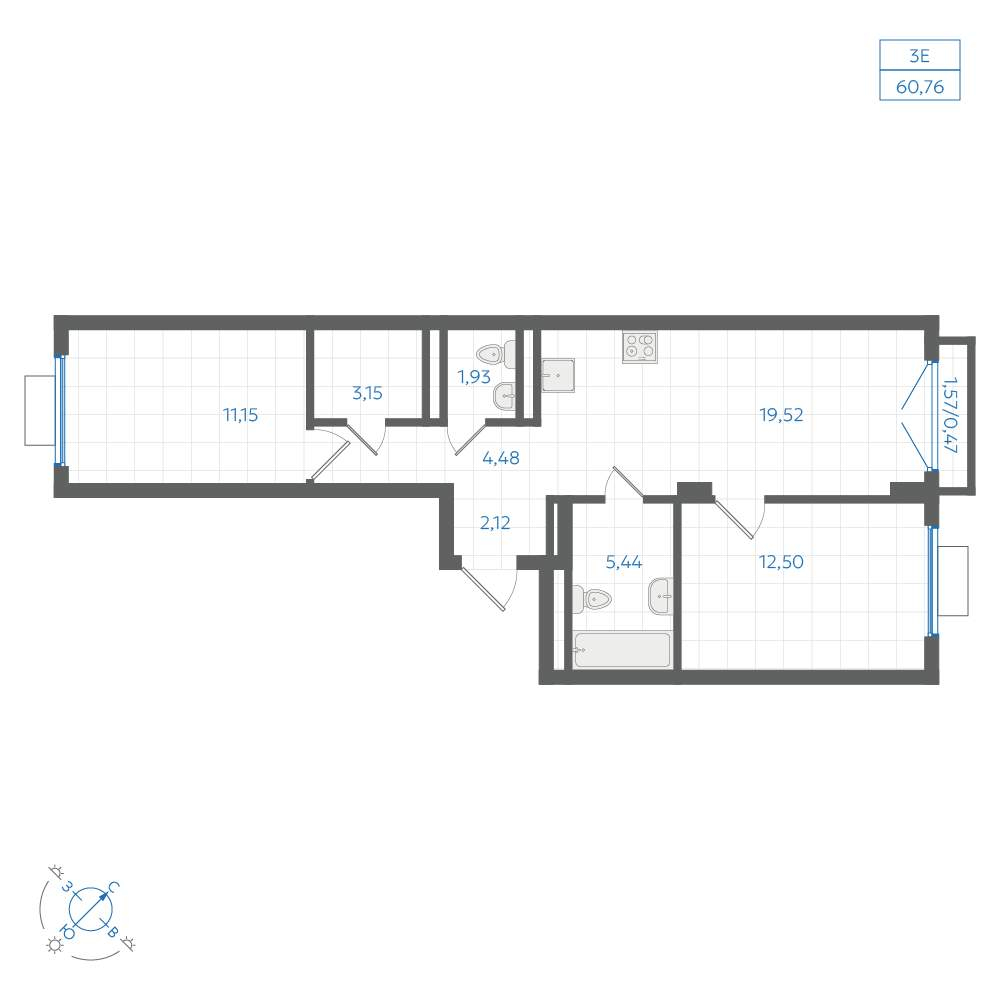 Продам двухкомнатную квартиру в новостройке 60.8 м.кв.