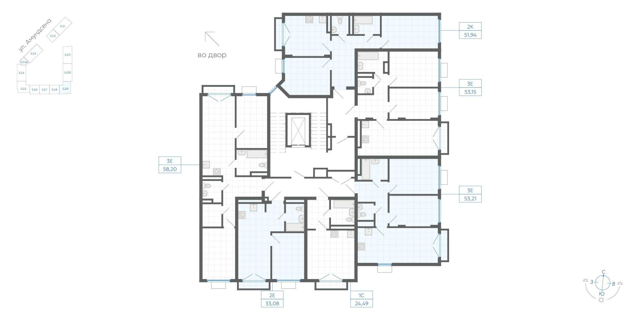 Квартира располагается на 2 этаже 4-этажного дома в ЖК Центральный парк.