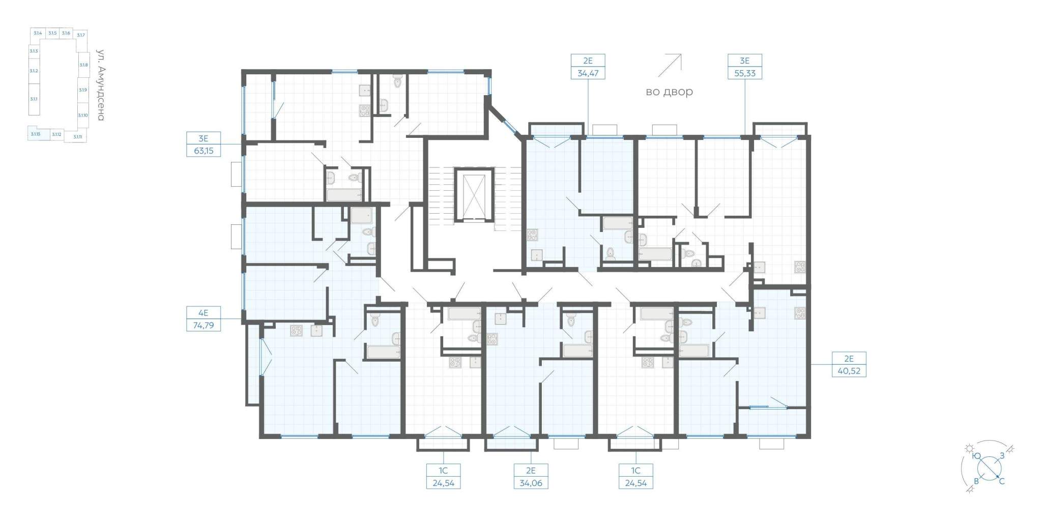 Квартира располагается на 3 этаже 4-этажного дома в ЖК Центральный парк.