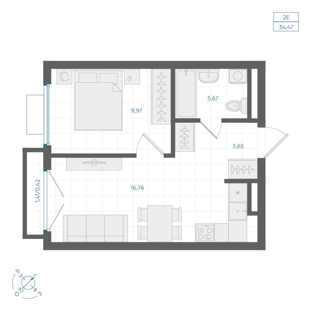 Продам однокомнатную квартиру в новостройке 34.5 м.кв.