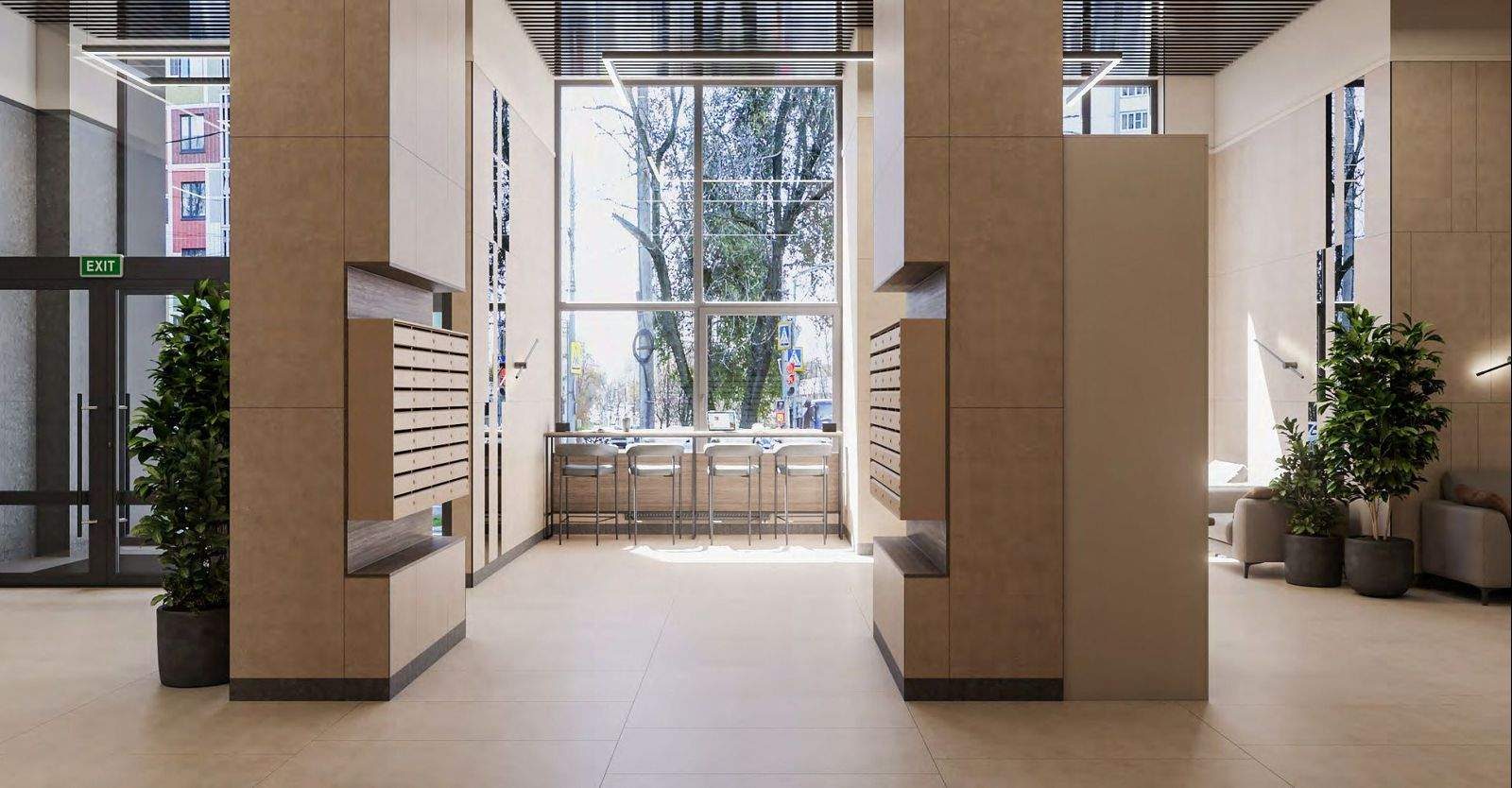 Сквозные подъезды без ступеней создают простой и комфортный доступ в ваш новый дом. Удобно возвращаться с прогулки с детским самокатом или из путешествия с чемоданом. Из подъезда легко выйти и на улицу и во двор. Грязезащита на входе в подъезд и лапомойка для ваших питомцев поможет поддержать чистоту в любую погоду. На первом этаже расположены колясочные и зона ожидания с вендингом.