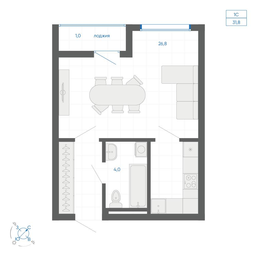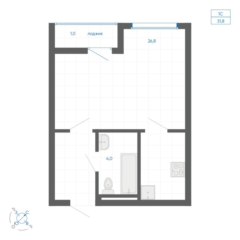 Продам квартиру-студию в новостройке 31.7 м.кв.