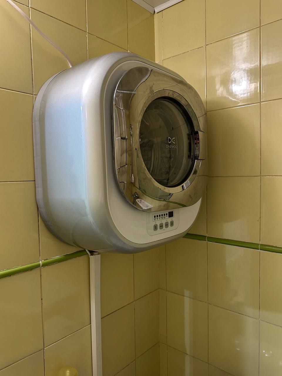 Стиральная машина в совмещенном сан.узле размещена на стене, что очень удобно в эксплуатации.